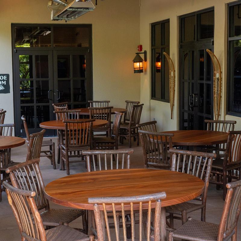 Our outdoor private dining area is covered and can hold up to 40 people. During winter it will be enclosed with heaters for year-round enjoyment!